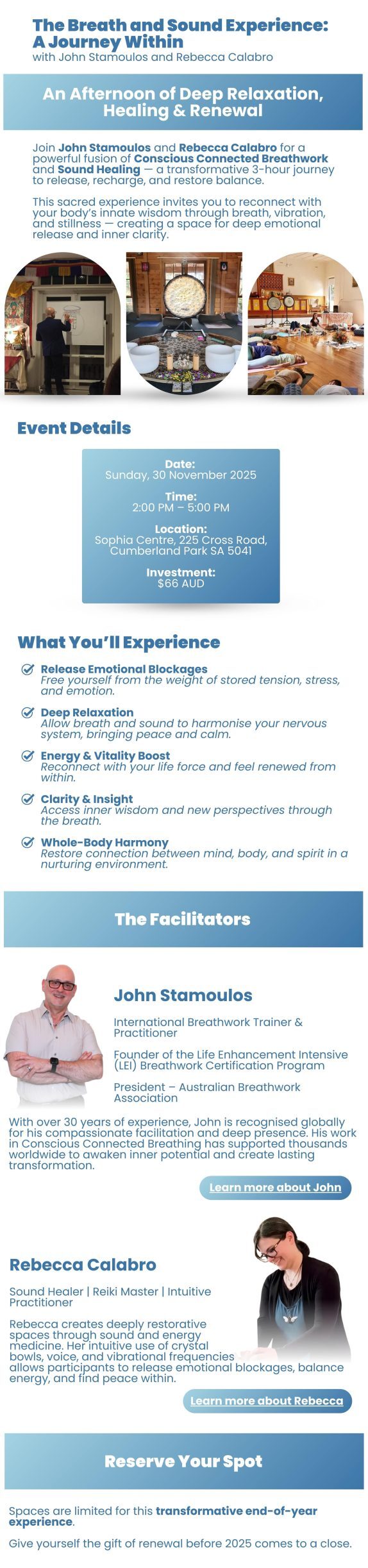 Breathwork & Soundbath Experience with John Stamoulos and Rebecca Calabro – 29 June 2025